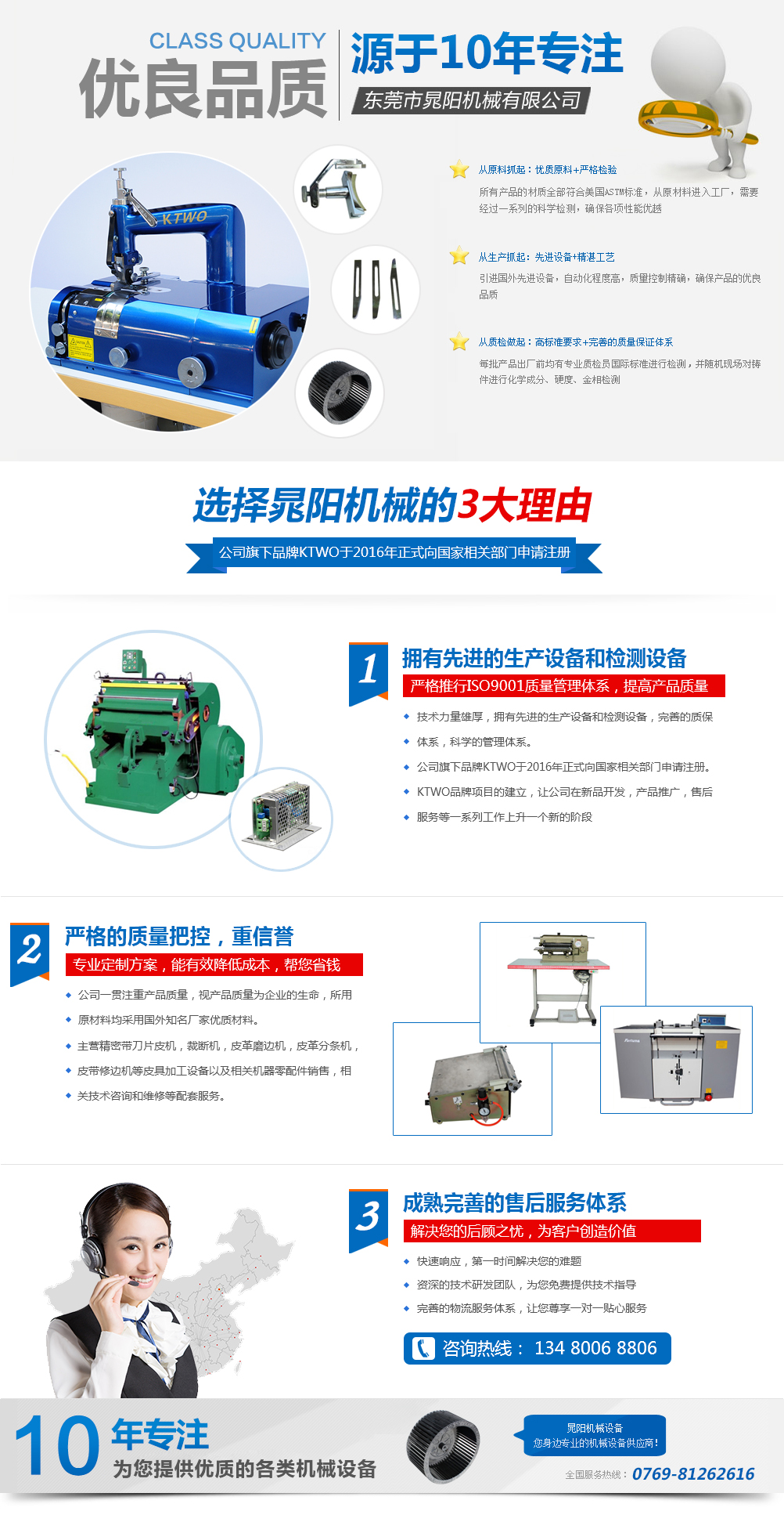 東莞市晁陽(yáng)機(jī)械有限公司(簡(jiǎn)稱晁陽(yáng)皮具機(jī)械),是一家由2008年收購(gòu)整合原臺(tái)灣臺(tái)北縣晁陽(yáng)實(shí)業(yè)有限公司后重組而來(lái)的獨(dú)資公司。重組后注冊(cè)地位于廣東省東莞市。經(jīng)營(yíng)各類皮具機(jī)械,鞋業(yè)機(jī)械。主營(yíng)精密帶刀片皮機(jī),裁斷機(jī),皮革磨邊機(jī),皮革分條機(jī),皮帶修邊機(jī)等皮具加工設(shè)備以及相關(guān)機(jī)器零配件銷售,相關(guān)技術(shù)咨詢和維修等配套服務(wù)。